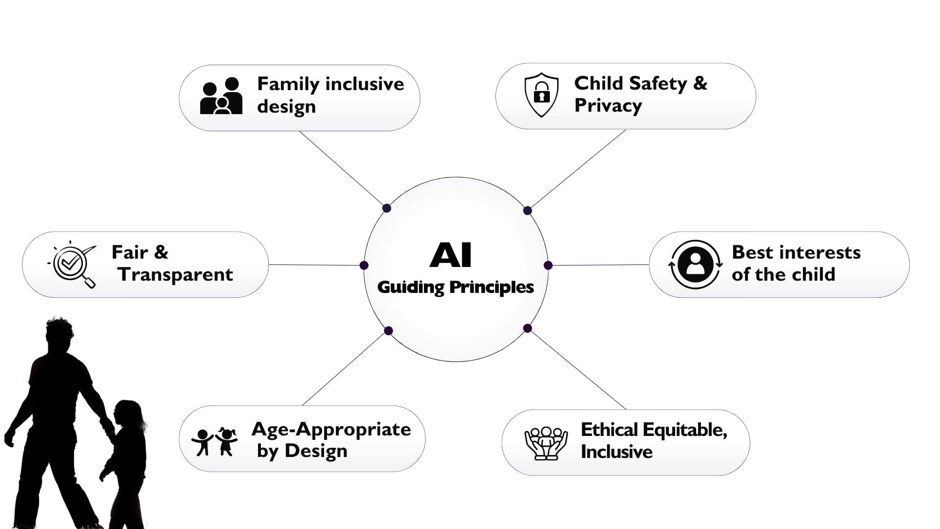 1. Establish, through continuous and structured dialogue including all stakeholders, shared guidelines that can support evaluation and mitigation of negative impact of AI products used by children. This work will be ongoing and evolve as our understanding improves. It will promote responsible AI development and deployment, prioritizing child safety, wellbeing and perspectives while allowing for equitable opportunities for all actors.